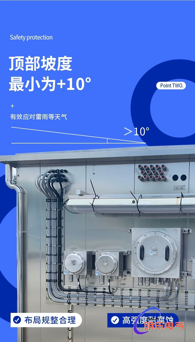 內容描述:河南明樂電氣有限公司生產銷售定做防爆配電箱,防爆正壓柜,防爆分析小屋,防爆撓性連接管,防爆膠泥,防爆接線箱、控制箱、電纜盤、操作柱、防爆空調等產品,是一家專業的防爆電氣產品制造商。產品質量及售后有保障,歡迎來電訂購! 優質服務:我們是正壓防爆小屋廠家,提供產品定制,如果您對我公司及我們的產品感興趣,歡迎來電咨詢,我們將竭誠為您提供產品信息和應用知識,使您不僅得到物超所值的產品而且得到我們貼心的服務。