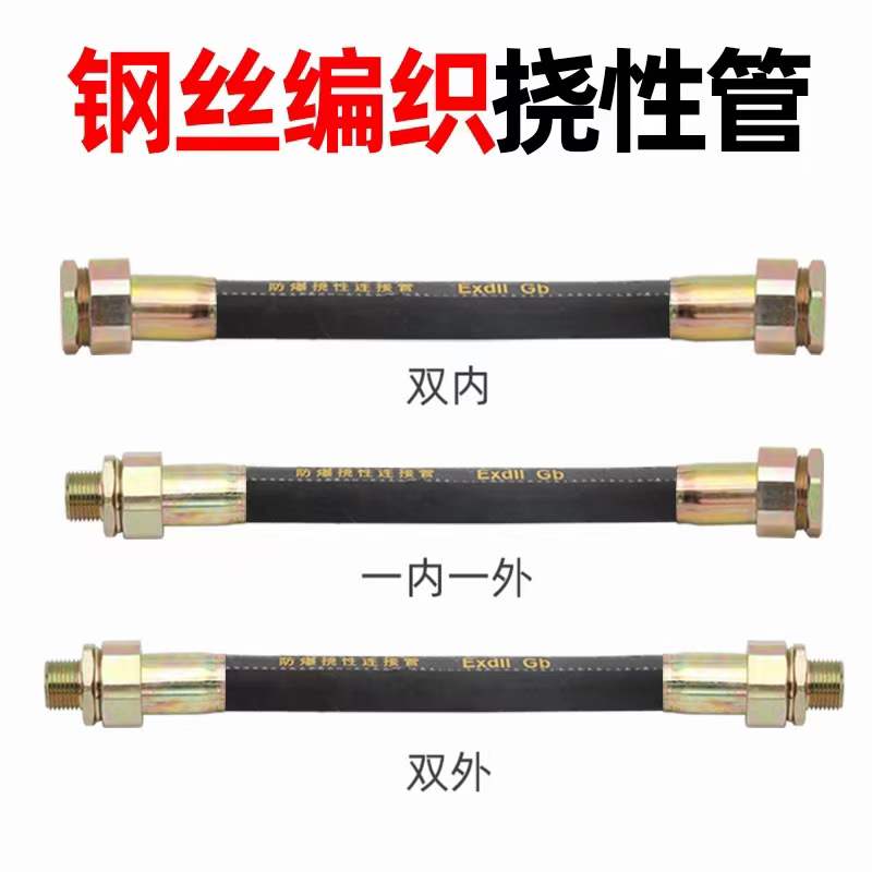 撓性管長度、螺紋尺寸可根據用戶需要特殊加工。如NPT螺紋,公制螺紋等。注:標注螺紋規格時應注明內外螺紋
