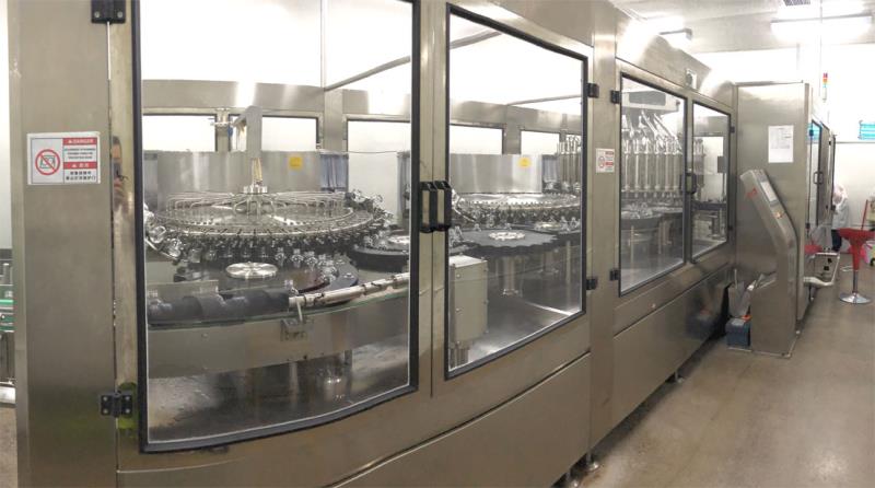 2017年,由廊坊百冠量身定制的20000B/H(330ml)玻璃瓶灌裝生產(chǎn)線落戶涼露酒業(yè),開啟了玻璃瓶酒類灌裝的新篇章。其中白酒定量灌裝一體機為四合一機型,具備沖瓶、瀝干、灌裝、封口功能,為百冠公司高端產(chǎn)品之一。
